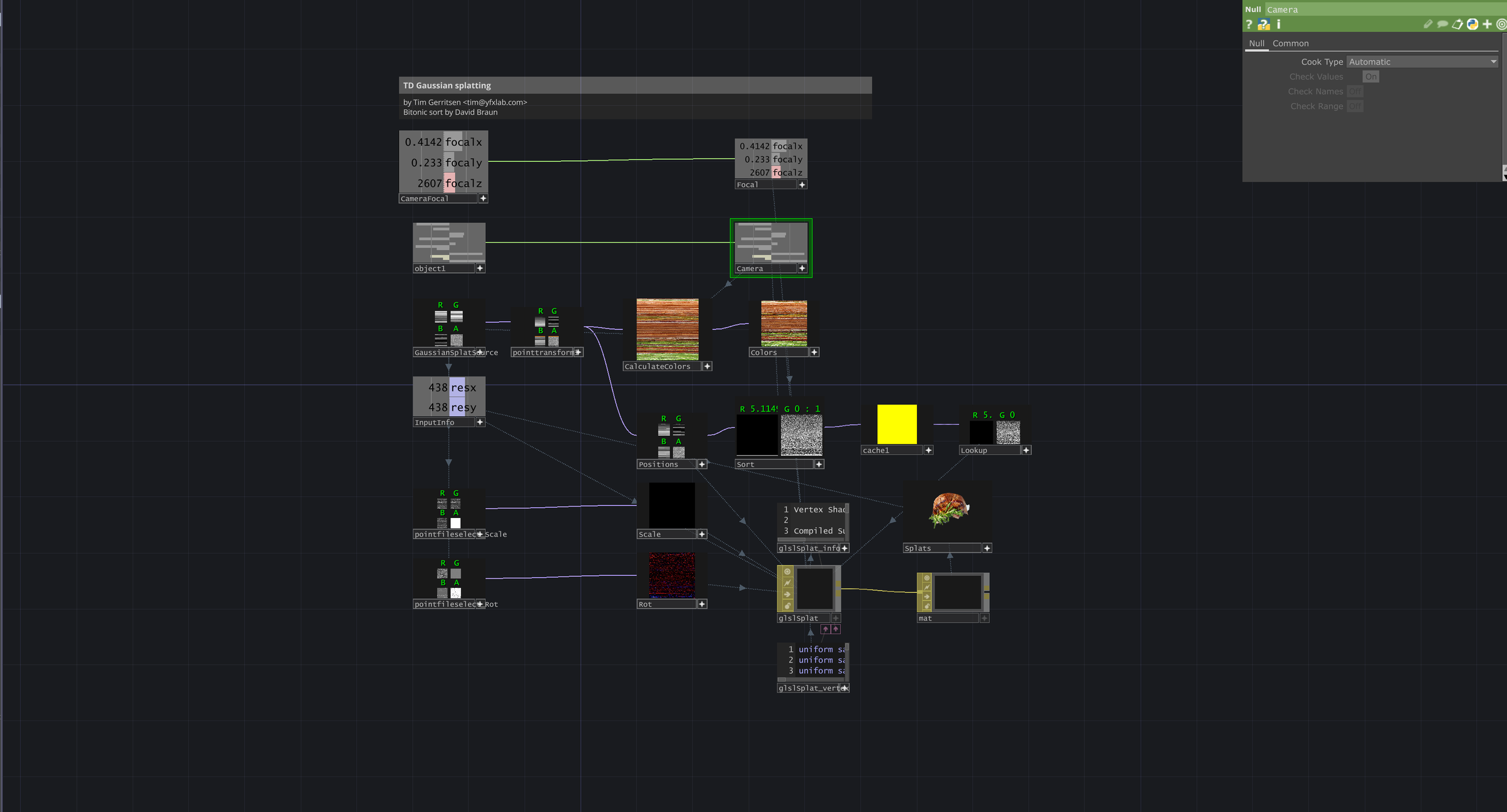 Explored TouchDesigner Gaussian splat integration examples